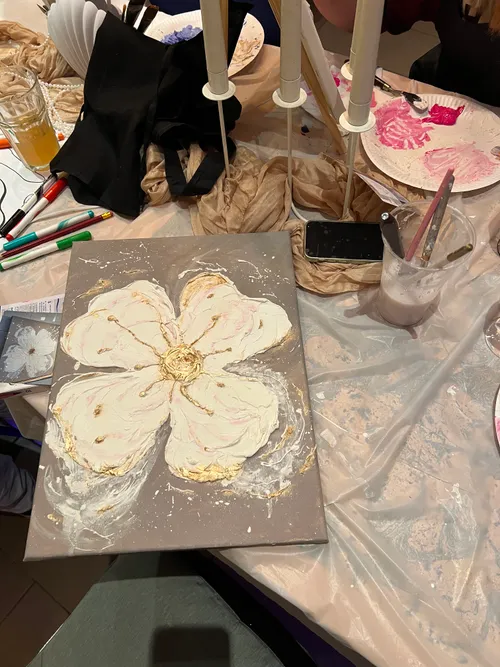 - Ich gebe kreative Workshops, bei denen wir in 2–3 Stunden ein eigenes Kunstwerk erschaffen. Es geht um das Genießen der Atmosphäre, Entspannung und eine Verbindung mit Deinem inneren Selbst. Am Ende des Workshops hält jede*r ein einzigartiges Kunstwerk in den Händen. Ich begleite Dich durch jeden Schritt, erkläre die Technik und unterstütze Dich, wenn nötig. (Acryl, Strukturpaste und Blattgold)